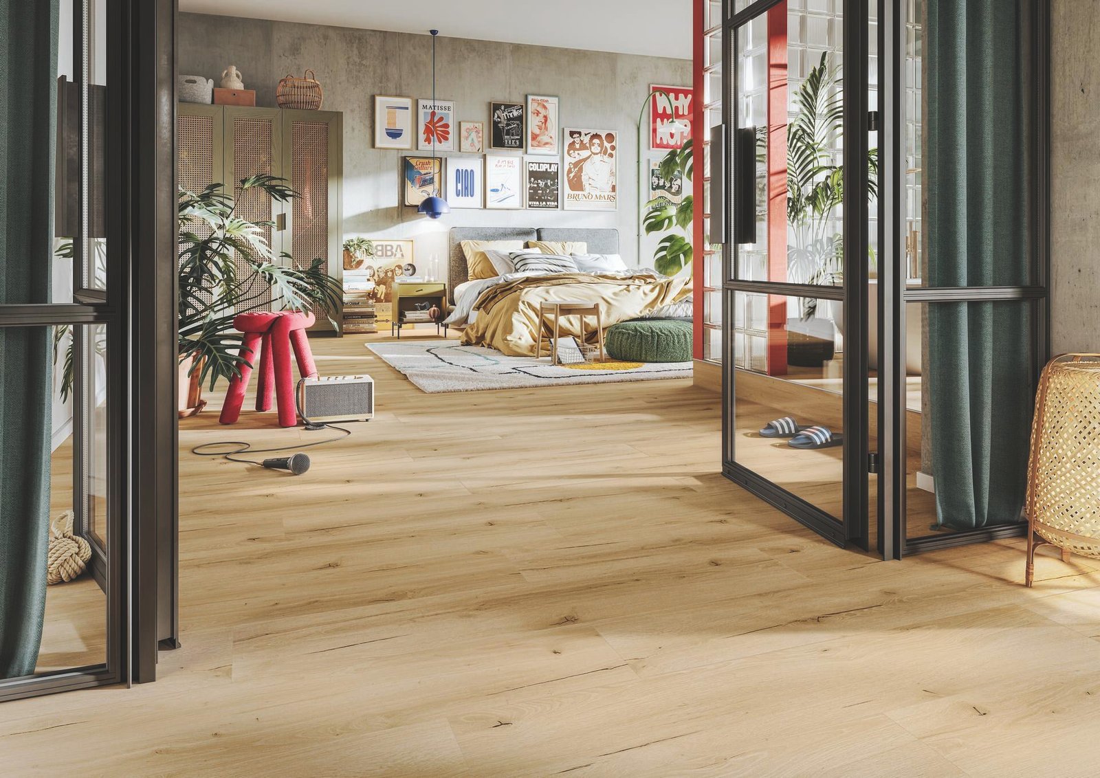 El suelo de diseño Meister Dryback-Vinyl DD 155 – Industrial Pop es una solución adhesiva profesional en formato tablón corto, que combina la calidez del roble en tono medio con un alto rendimiento técnico. Su estructura natural wood, con poro continuo, ofrece una apariencia armoniosa y auténtica, reproduciendo con realismo la textura de la madera natural.