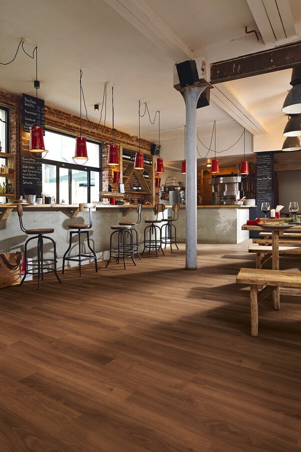 El MeisterDesign. laminate LC 150 – Nogal es un suelo laminado de formato tablón corto que aporta profundidad, elegancia y un carácter marcado a cualquier estancia. Su diseño versátil lo convierte en una opción práctica tanto para viviendas como para espacios comerciales que buscan un acabado distinguido y atemporal.