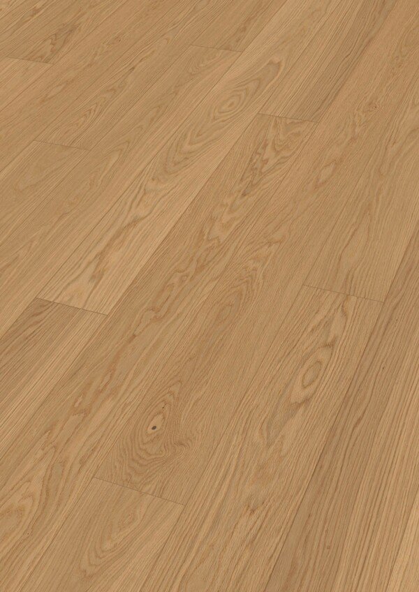 El acabado aceitado natural de alta calidad realza la belleza del roble, aportando un aspecto especialmente cálido y un tacto muy natural. La superficie Weartec Nature, elaborada a base de ceras y aceites procedentes de materias primas naturales renovables, protege la madera sin ocultar su carácter, dejando que respire y envejezca de forma auténtica. Como toda la gama MeisterParquet. longlife, este suelo es especialmente adecuado para instalación flotante sobre calefacción por suelo radiante.