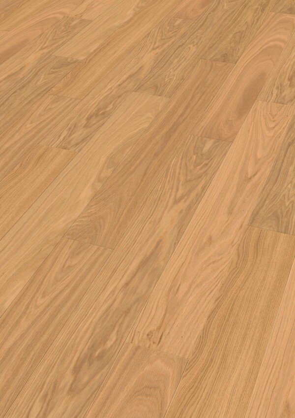 El acabado con barnizado ultramate impregna en profundidad cada poro de la madera, realzando su aspecto extranoble y natural. Además, convierte el suelo en una superficie muy fácil de cuidar, resistente a las manchas y especialmente insensible a los microarañazos, manteniendo su estética impecable con el uso diario.