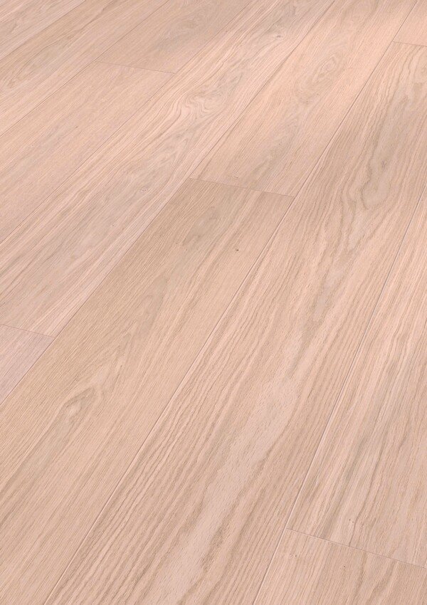La clasificación armónica garantiza una selección de lamas con vetas equilibradas y un conjunto visual uniforme, perfecta para ambientes serenos y sofisticados. La estructura cepillada aporta textura y profundidad al roble, mientras que el bisel en V longitudinal con microbisel en el lado corto define cada tablón y refuerza la percepción de un suelo de gran formato. Puede instalarse flotante o encolado en toda la superficie mediante el sistema Masterclic Plus, que asegura una colocación rápida, limpia y segura.
