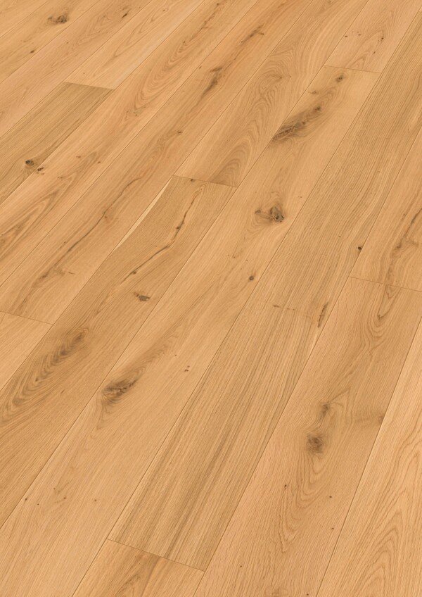 El acabado con barnizado ultramate impregna en profundidad cada poro de la madera, realzando su aspecto extranoble y natural. Este tratamiento hace que el suelo sea muy fácil de cuidar, resistente a las manchas y especialmente insensible a los microarañazos, manteniendo su belleza incluso con un uso diario intensivo.