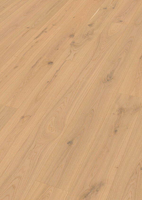 El acabado con barnizado ultramate impregna en profundidad cada poro de la madera, realzando su aspecto extranoble y natural. Este tratamiento convierte al suelo en una superficie muy fácil de cuidar, resistente a las manchas y especialmente insensible a los microarañazos, manteniendo su belleza incluso con el uso diario.