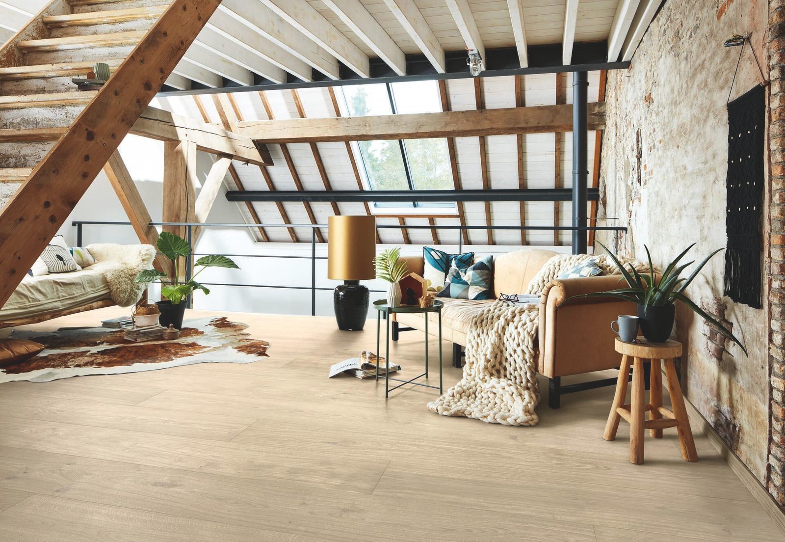 La clasificación auténtica pone en valor las vetas naturales del roble, aportando personalidad y naturalidad al conjunto. El acabado blanco a la cal suaviza el tono de la madera y realza su textura, creando una sensación de amplitud y frescura. La estructura cepillada añade profundidad y tacto natural, mientras que el bisel en V longitudinal con microbisel en el lado corto define cada tablón y refuerza la percepción de un suelo de alta gama. Puede instalarse flotante o encolado en toda la superficie gracias al sistema Masterclic Plus, que garantiza una colocación rápida, limpia y segura.