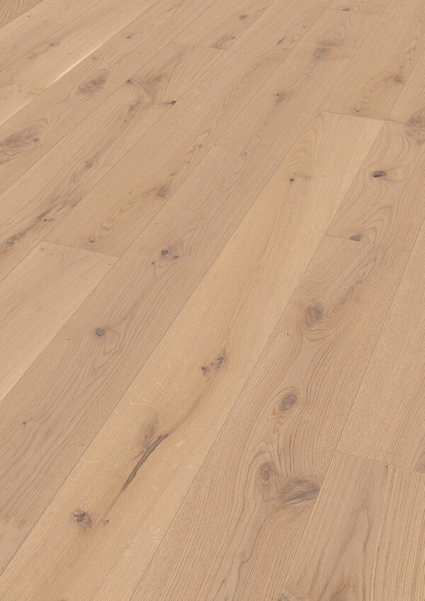El acabado con barnizado ultramate impregna en profundidad cada poro de la madera, realzando su aspecto extranoble y auténtico. Este tratamiento convierte al suelo en una superficie muy fácil de cuidar, resistente a las manchas y especialmente insensible a los microarañazos, manteniendo su belleza incluso con un uso diario intensivo.