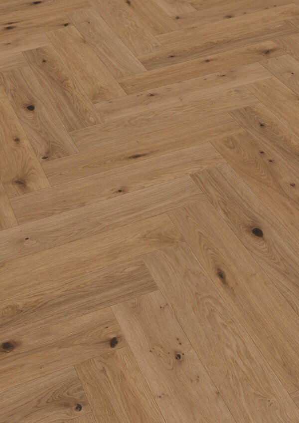 El acabado con barnizado ultramate impregna en profundidad cada poro de la madera, realzando su aspecto extranoble y natural. Este tratamiento convierte el suelo en una superficie muy fácil de cuidar, resistente a las manchas y especialmente insensible a los microarañazos, manteniendo su estética intacta con el uso diario.