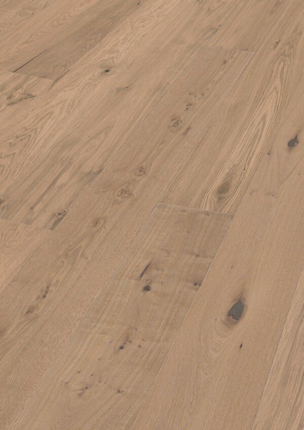 Una elección ideal si buscas un suelo de madera auténtica, resistente y de perfil bajo, con un acabado greige elegante y actual que se adapta con facilidad a diferentes estilos de interiorismo.