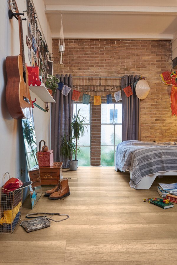 El MeisterDesign. laminate LL 150 – Roble casa de botes claro es un suelo laminado de formato XXL que transmite una sensación de amplitud, naturalidad y elegancia atemporal. Sus tablones de más de 2 metros de longitud realzan visualmente los espacios amplios y aportan continuidad, haciendo que las estancias se perciban más abiertas y luminosas.