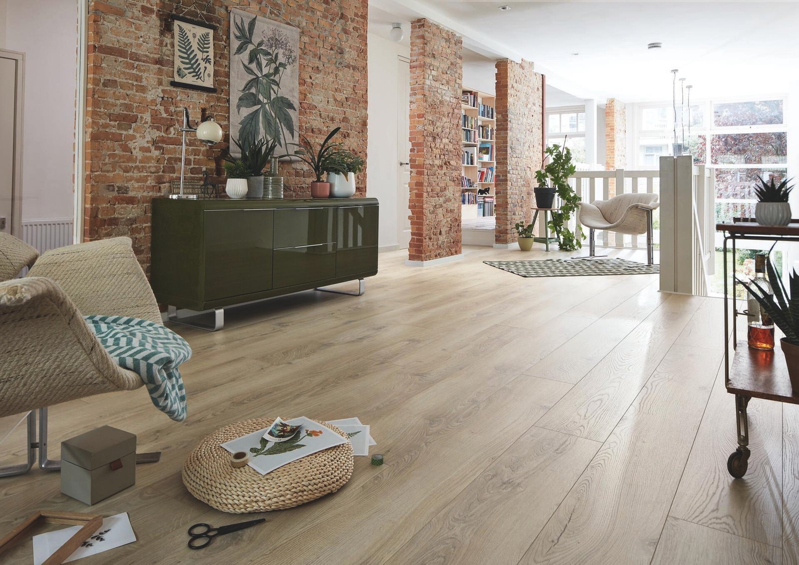 Este suelo destaca por su resistencia al agua de hasta 24 horas, proporcionando una tranquilidad extra en el día a día y ampliando sus posibilidades de uso en toda la vivienda. La decoración de roble de alta calidad se luce especialmente en el formato de tablón de casa de campo, de más de dos metros de largo, creando espacios visualmente amplios, equilibrados y acogedores.