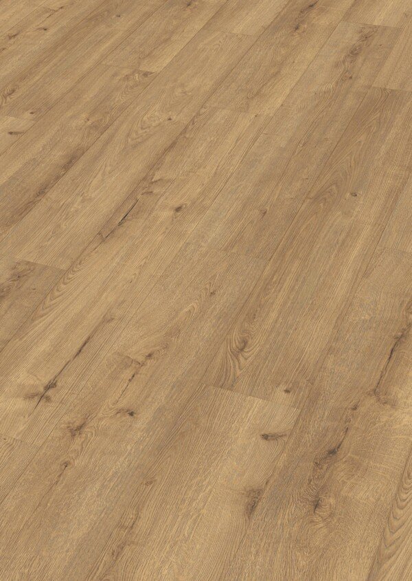 El suelo laminado MeisterDesign. laminate LD 250 – Roble champán ofrece una estética elegante y luminosa, con un tono marrón equilibrado y matices suaves que aportan calidez sin recargar el espacio. Su diseño imita con gran realismo la madera de roble, convirtiéndolo en una opción muy versátil para interiores modernos, contemporáneos o clásicos refinados.