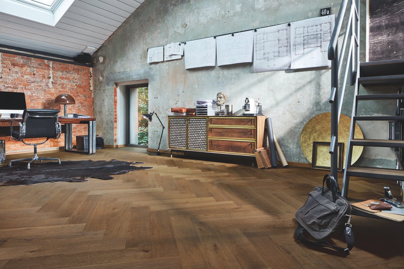 Un suelo de alta gama que combina la elegancia clásica de la espiga con un tono gris oliva actual, ofreciendo resistencia, facilidad de mantenimiento y un diseño con mucha personalidad para espacios que quieren destacar.