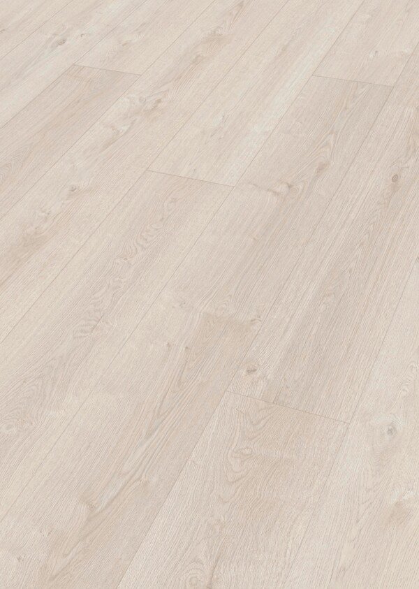 El suelo laminado MeisterDesign. laminate LL 250 – Roble mountain white destaca por su estética clara y contemporánea, inspirada en el roble blanqueado de montaña. Su tono blanco luminoso aporta amplitud visual y una sensación de frescura, siendo una opción ideal para interiores modernos, nórdicos o minimalistas que buscan espacios más abiertos y llenos de luz.