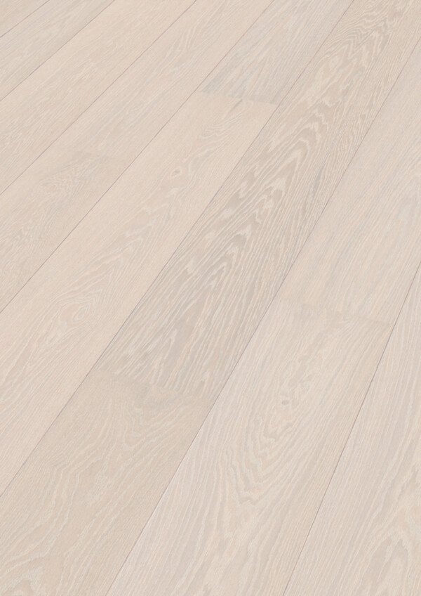 Este tratamiento superficial hace que el suelo sea insensible a las manchas, resistente a los microarañazos y muy cómodo de cuidar, manteniendo su estética intacta con el paso del tiempo. El cepillado resalta la textura natural del roble, mientras que el bisel en V longitudinal y el microbisel en los lados cortos aportan definición y carácter a cada tablón.