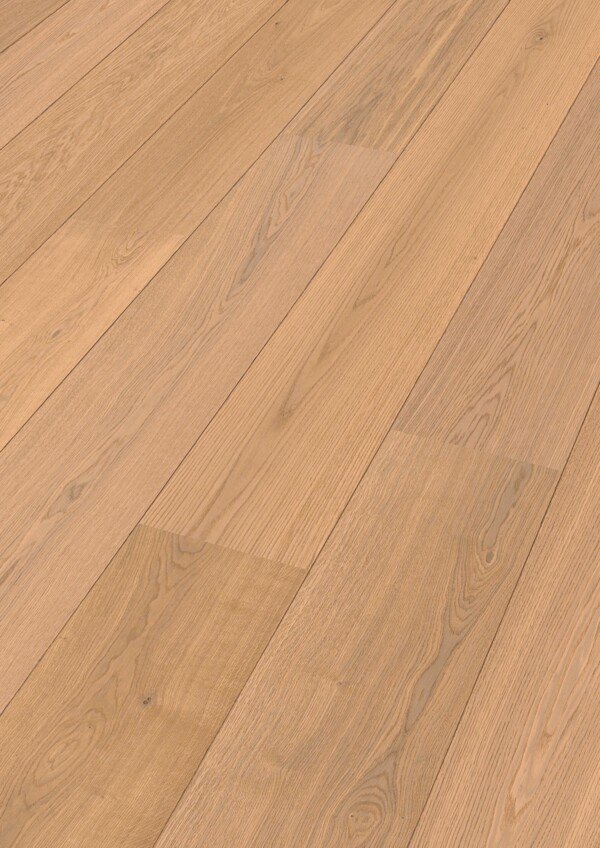 Un suelo de alta gama que combina naturalidad, resistencia y facilidad de mantenimiento, ideal para quienes buscan la calidez del roble con un acabado claro, luminoso y atemporal.