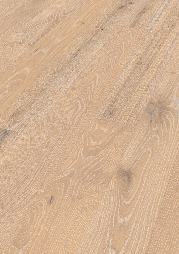 Este suelo combina estabilidad, flexibilidad y una estética muy natural, con vetas vivas y gradientes auténticos que aportan personalidad y luminosidad al ambiente. El acabado blanco luminoso a la cal suaviza el tono del roble y crea una sensación de amplitud y frescura, ideal para interiores modernos y equilibrados. La superficie Duratec Nature con barnizado ultramate protege la madera, ofreciendo una elevada resistencia al desgaste, facilidad de limpieza y un tacto natural muy agradable.