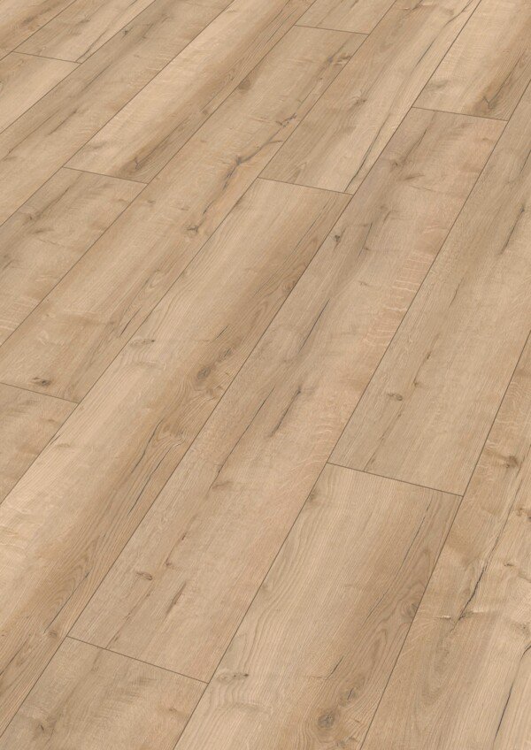 Una opción ideal si buscas un suelo de gran formato resistente al agua, con estética de roble en tono medio, excelente confort acústico y una solución prémium pensada para el uso diario.