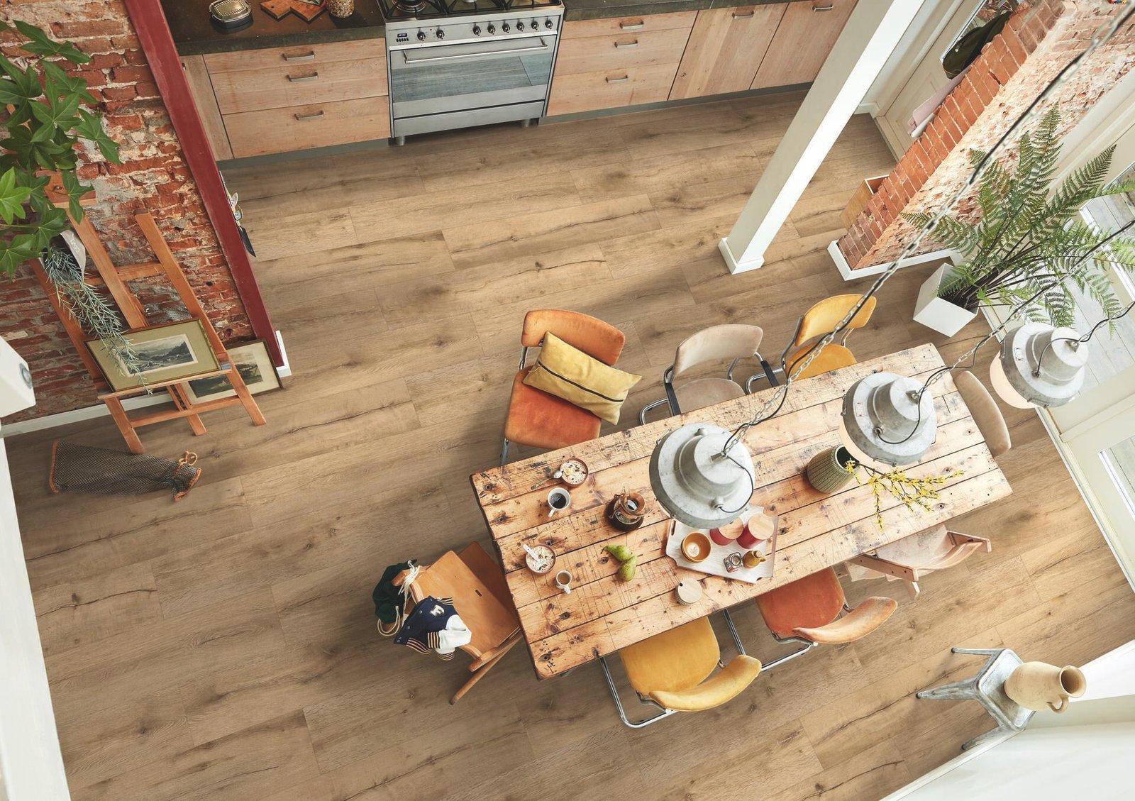Una opción ideal si buscas un suelo ecológico, ultrarresistente y 100 % impermeable, con una estética de roble oscuro contemporáneo y máxima versatilidad para cualquier espacio del hogar.