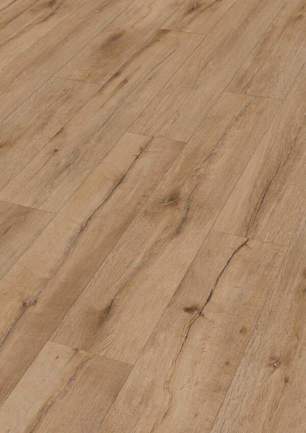 La decoración Wild Oak destaca por su estética intensa y moderna, con una tonalidad oscura de base gris que aporta profundidad y un aire sofisticado a los espacios. La superficie con estructura softwood refuerza el tacto natural y el aspecto auténtico de la madera, mientras que el microbisel a cuatro lados define cada tablón y aporta un relieve visual marcado. El formato de tablón corto facilita la instalación y ofrece gran versatilidad en el diseño de interiores.